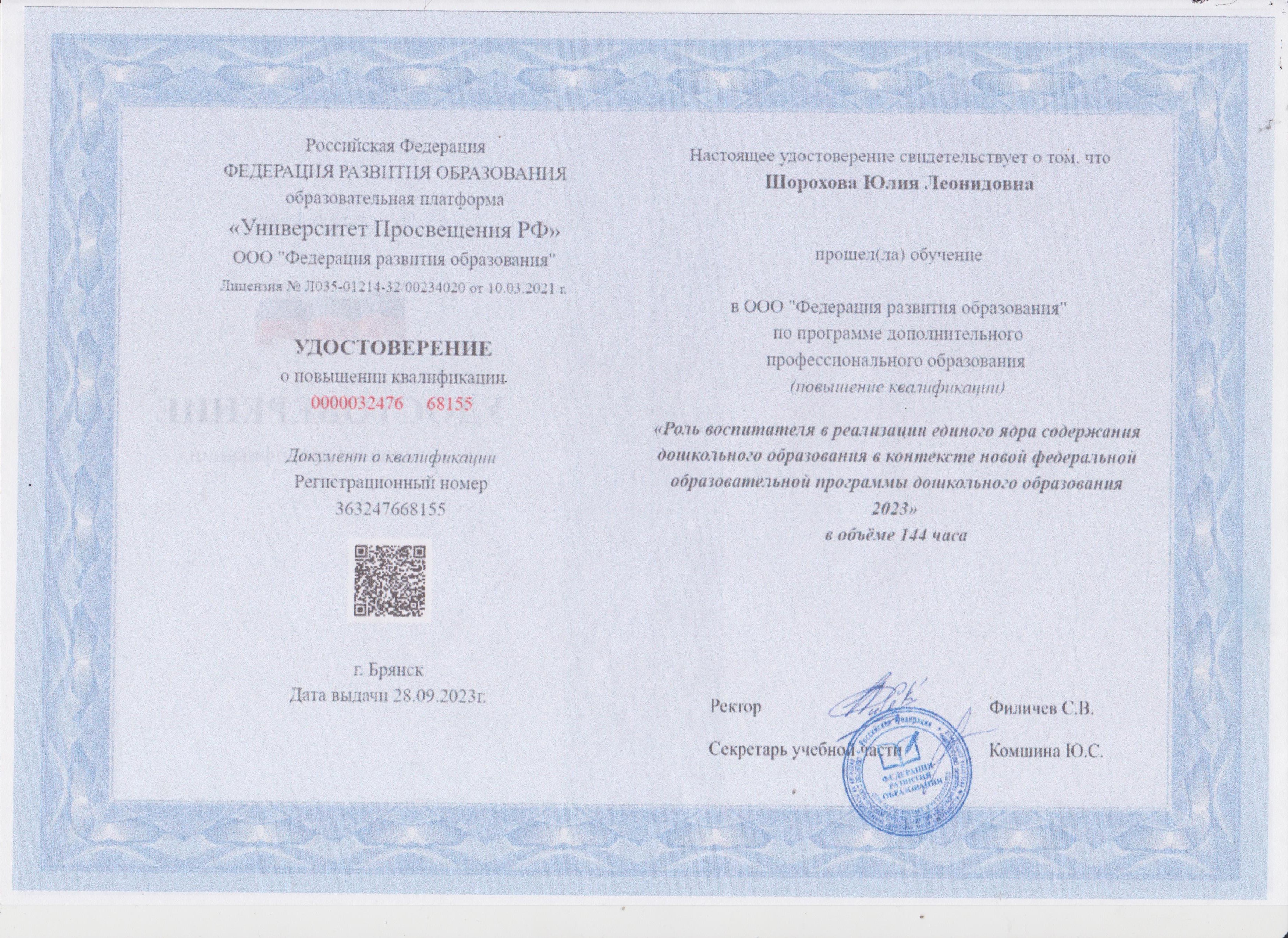 (Университет Просвещения РФ ООО "Федерация развития образования" . 144часов. Форма обучения: дистанционная. Направленность: иное).